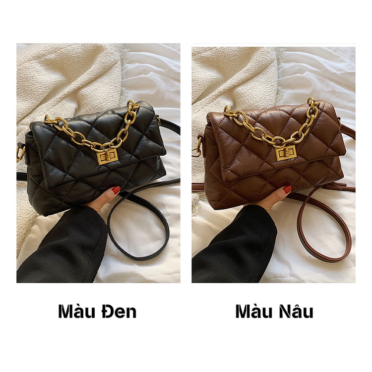 Túi xách nữ mini đeo chéo, túi đeo vai da mềm phối xích họa tiết thời trang SPB 454