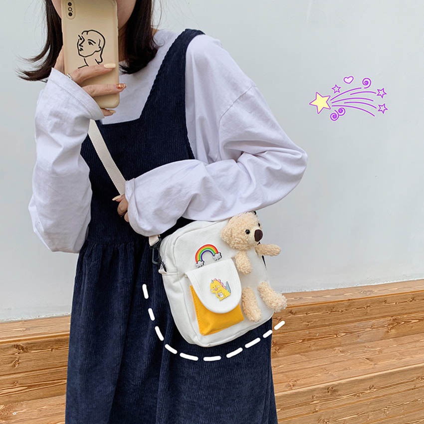 • Túi đeo chéo nữ phong cách Hàn Quốc. • Túi xách nữ đeo chéo thời trang rất dễ thương. • Túi nữ xinh xắn sẽ là người bạn đồng hành tuyệt vời cùng nàng theo năm tháng. • Túi chéo nữ chất đẹp, thiết kế trẻ trung, màu sắc bắt mắt, túi đeo chéo cực chất với đường may tinh tế, tỉ mĩ, chắc chắn, túi cute dễ dàng phối đồ đa phong cách, trẻ trung. • Túi chéo mini, túi vải đi chơi, dạo phố. • Chất liệu: Túi vải. • Kích thước: 20cm * 17cm * 6.5cm • Màu sắc: Xanh lá - Vàng - Xanh lam - Đen - Hồng • Sticker ngẫu nhiên. #tui #tuinu #tuideocheo #tuideocheonu #tuixachnu #tuixach #tuicheomini #tuixachnudeocheo #tuixachnuhanquoc #tuideonu #tuicheonu #tuimininu #tuivaideocheo #tuicheo #tuitote #tuivai #tuideovainu #tuimini