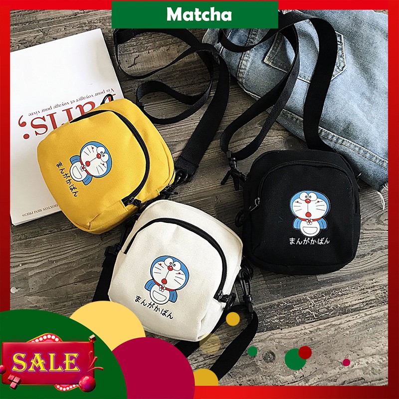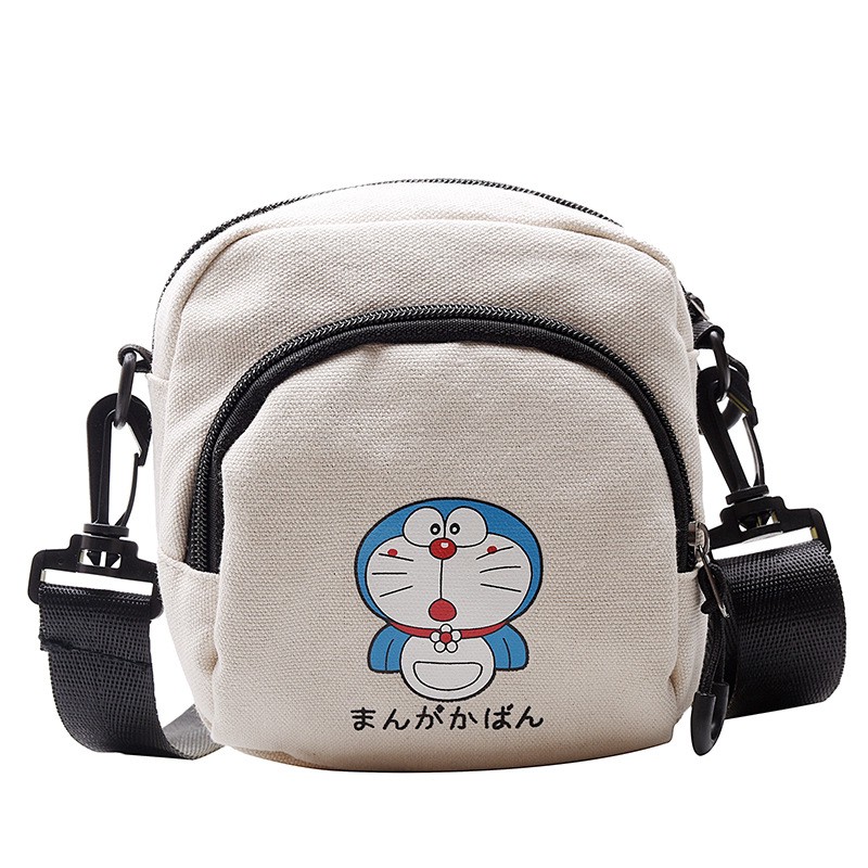 Túi đeo chéo vải canvas in hình doraemon phong cách Hàn Quốc xinh xắn cho nữ
