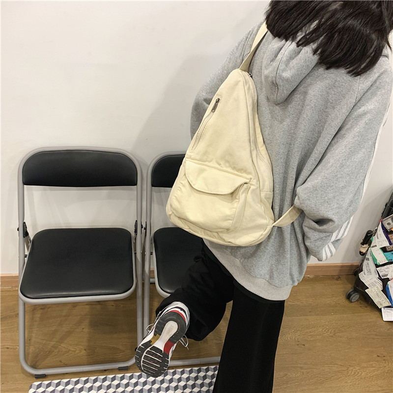 Túi Đeo Chéo Vải Canvas Màu Trơn Sức Chứa Lớn Phong Cách Nhật Bản