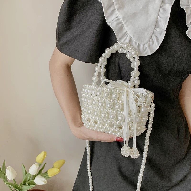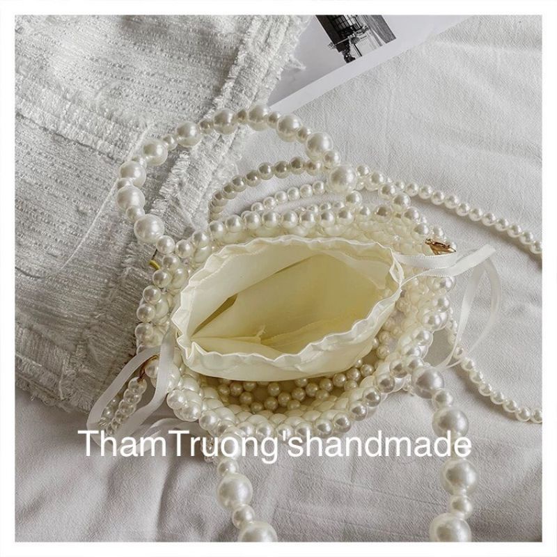 Túi đeo chéo/ xách tay kết hạt cườm giả ngọc trai handmade xinh xẻo