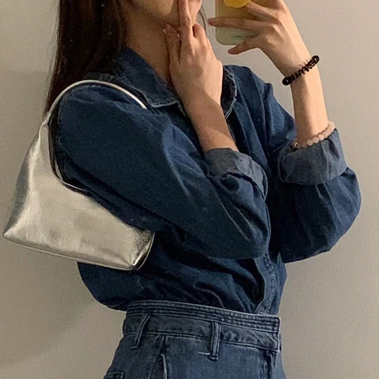 Túi đeo kẹp nách nữ màu ánh bạc phong cách ulzzang Hàn Quốc