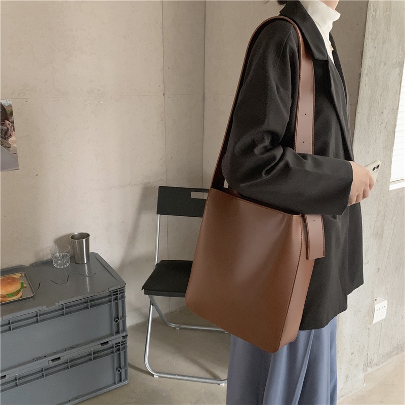 Túi đeo vai IELGY dạng xô sức chứa lớn phong cách retro đơn giản thường ngày