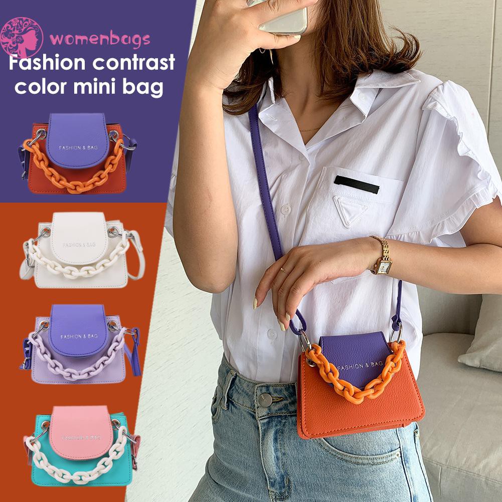 Túi đeo vai mini màu nổi sắc bật phối dây xích acrylic nhỏ thời trang nữ