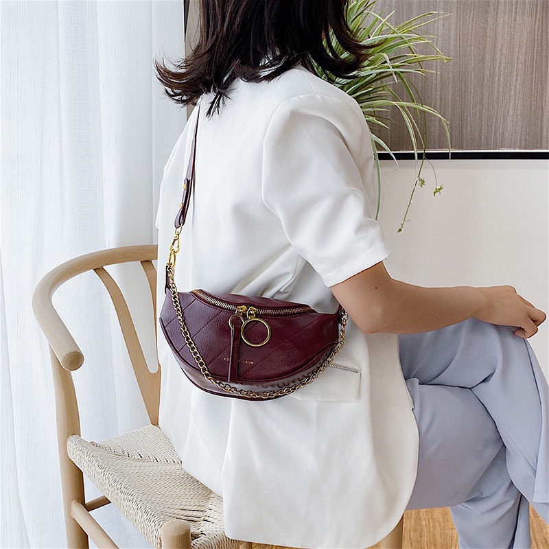 Túi bao tử dây xích cá tính túi đeo ngực túi đeo vai nữ
