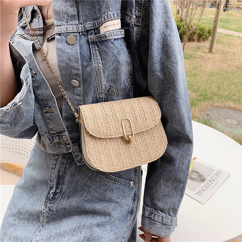 Túi Xách cói Đeo Vai Thiết kế dệt rơm sành điệu mới Túi Đeo Chéo Mini nữ