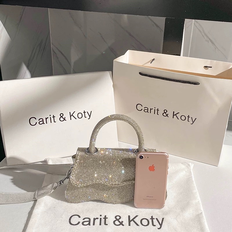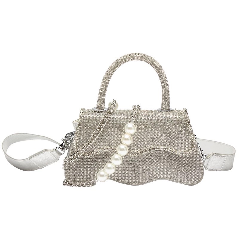 Túi cầm tay đeo chéo đính đá gợn sóng đi tiệc cực sang