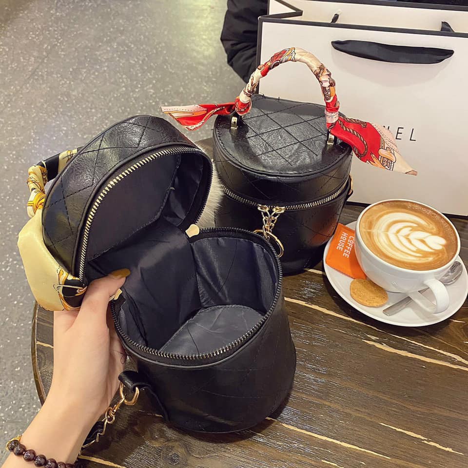 Nhiều ng hỏi nên e về luôn nhé Hàng sẵn chuẩn loại lót đỏ có logo như ảnh kèm video nhé ce #109k____109k_____109kkk TÚI CỐP CHA.NEL TRÒN CỰC ĐẸP GIÁ SIÊU TỐT NHÉ CE ƠI ️️️ VỠ HỘP NÊN EM XẢ KHO GẤP THANH LÝ hàng chuẩn QC sz chuẩn lun KHÁC mấy hàng may lại zìa tayyy thui ạ , ko đâu bán zá này hic em túi này phai gọi là hottt lắm í kaka ️ nhìn là biết mang zới gì cũng xinhh ạ , sz nhỏ nhỏ y hình zậy đoá em chỉ gom sale đc 1 màu đen thuii nè . Mấy chế qu
