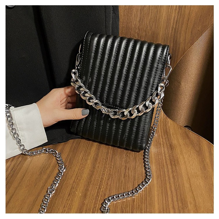 Túi Da Sọc Phối Dây Xích Đựng Điện Thoại Tiện Dụng Cho Nữ KM1