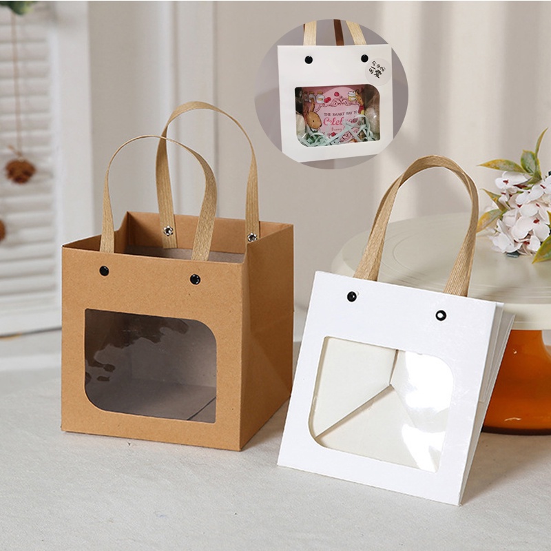 Túi giấy kraft hình vuông trong suốt đính đinh tán độc đáo dùng để đựng quà