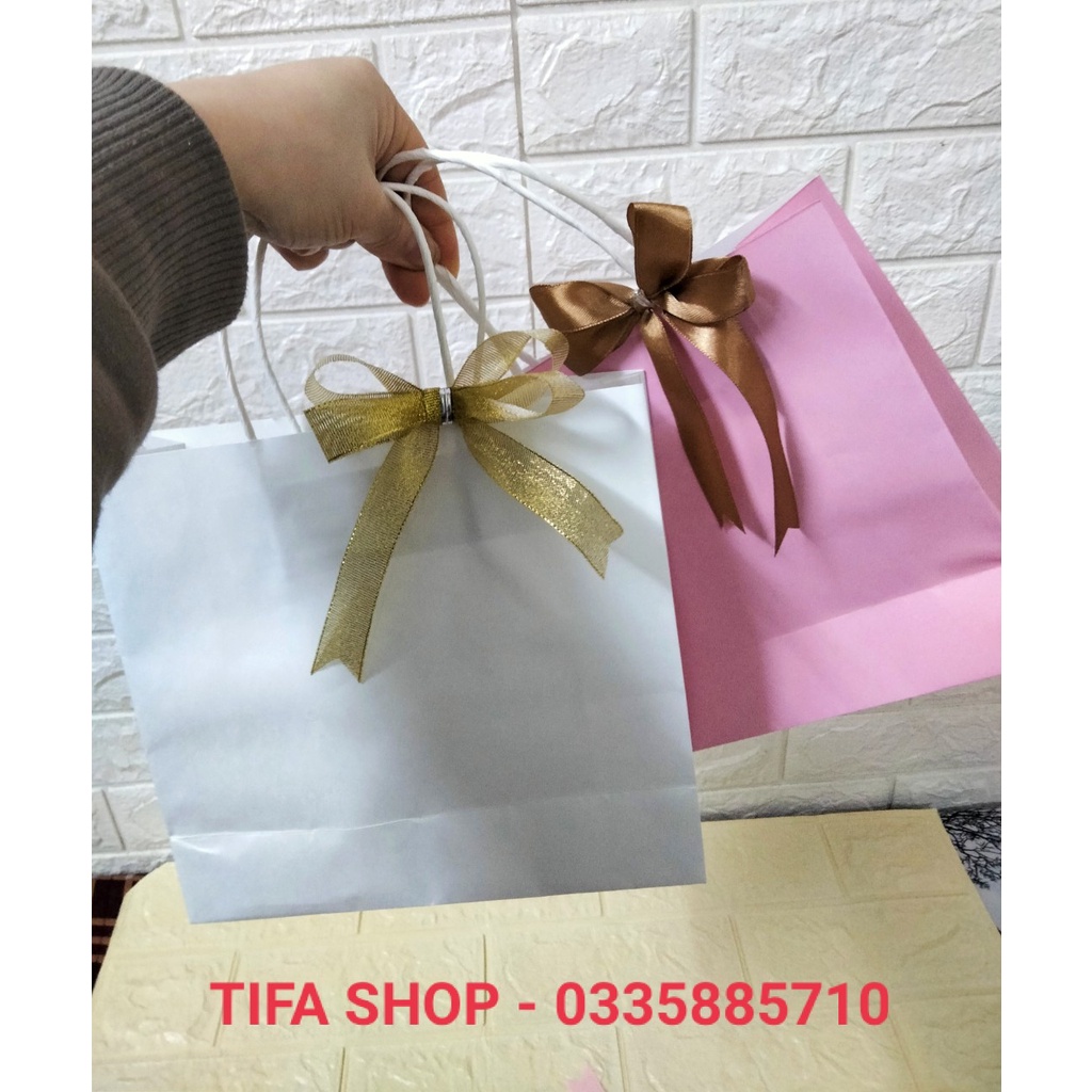 Túi giấy kt 22x20x8cm đựng mỹ phẩm, quần áo Kraft Nhật quai xoắn cao cấp có sẵn
