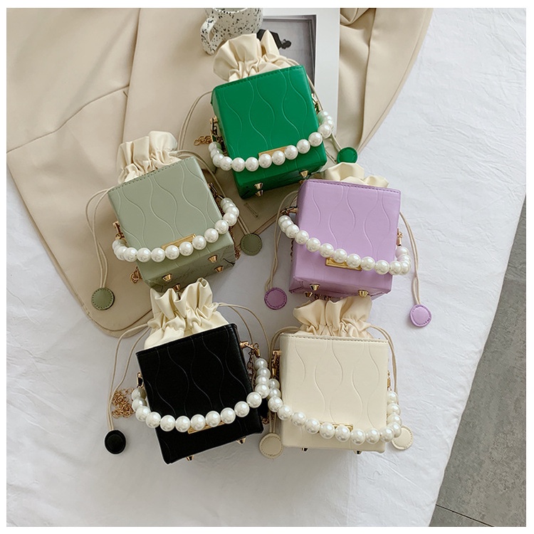 Túi Hộp Mini Đeo Chéo Dây Chuỗi Hạt Ngọc Trai Đơn Giản Mẫu Mới 2022 Thời Trang Mùa Thu Cho Nữ