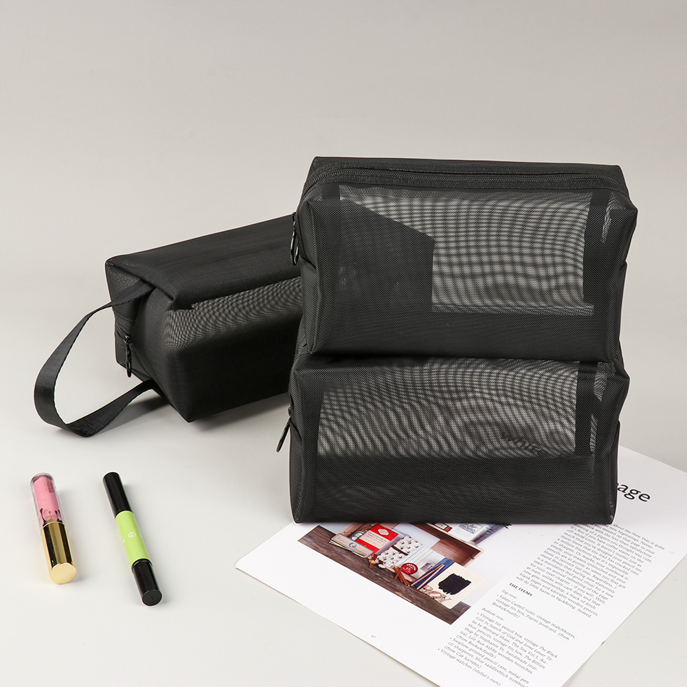 Túi lưới màu đen khóa kéo đựng mỹ phẩm với sức chứa lớn đa năng thời trang