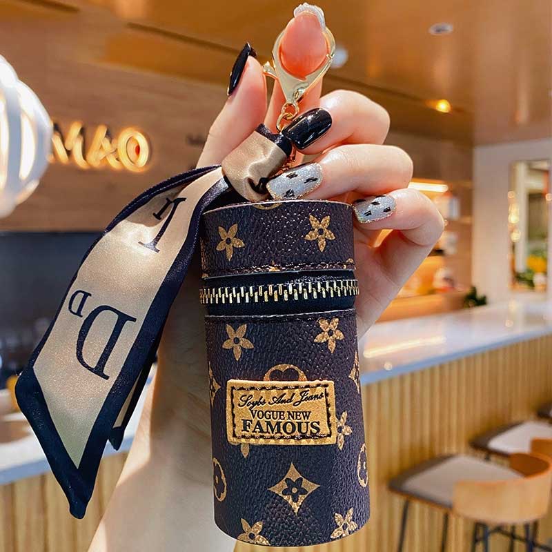 Móc Khóa, Móc Treo Túi mini, Họa Tiết Hoa Nâu Đựng Son, Chìa Khóa, Đựng Tiền Siêu Tiện Dụng