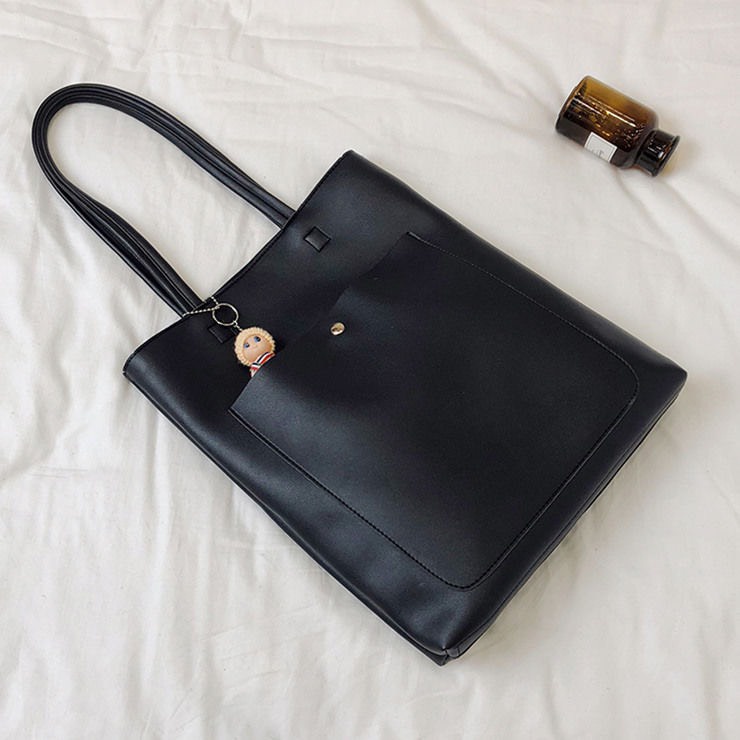 Túi tote da đeo vai có ngăn túi nhỏ trước style ullzang Hàn Quốc P107