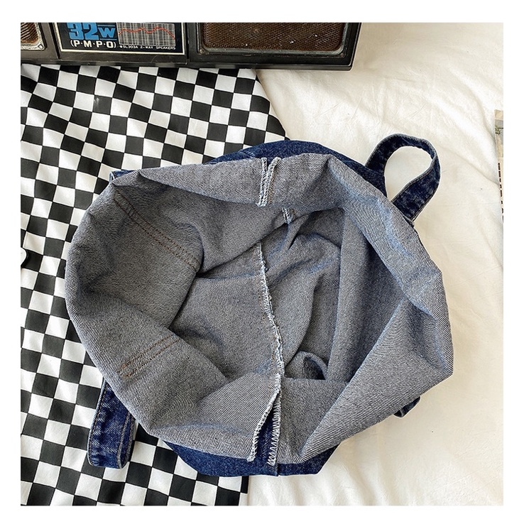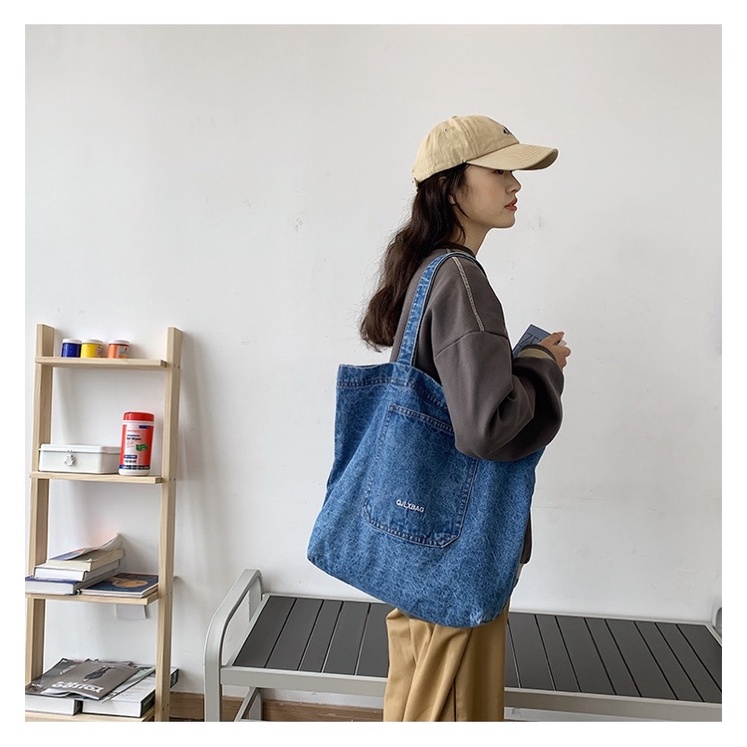 Túi Tote Denim Đen | Túi Tote Đi Học Jeans | Túi Tote Lớn Đựng Nhiều Đồ