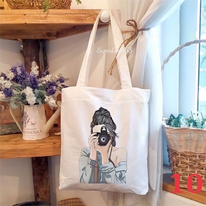 Túi tote túi vải canvas Hàn Quốc hoạ tiết cô gái đựng vừa A4 laptop đi chơi đi học Superbag668 HQ215