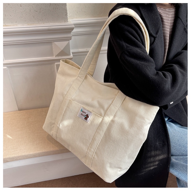 Túi Tote vải canvas đi chơi phong cách Hàn Quốc, túi đeo vai vải nhung tăm chất lượng thời trang đi làm đi học vừa a4