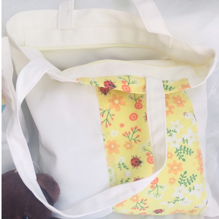 Túi tote vải canvas đi học có khóa kéo, có túi nhỏ trong