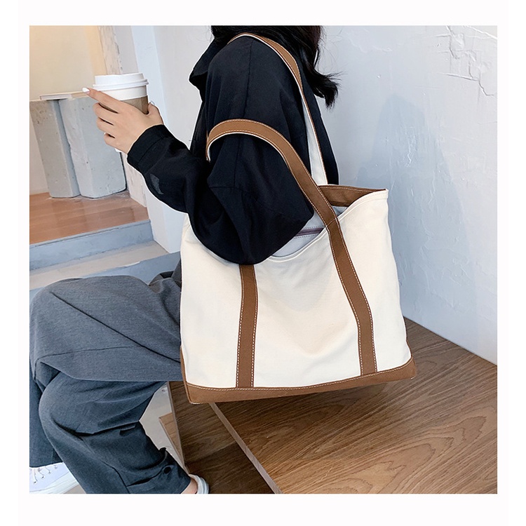 Túi tote vải canvas đựng đồ cỡ lớn đi học đi chơi phong các Hàn Quốc Bounjour