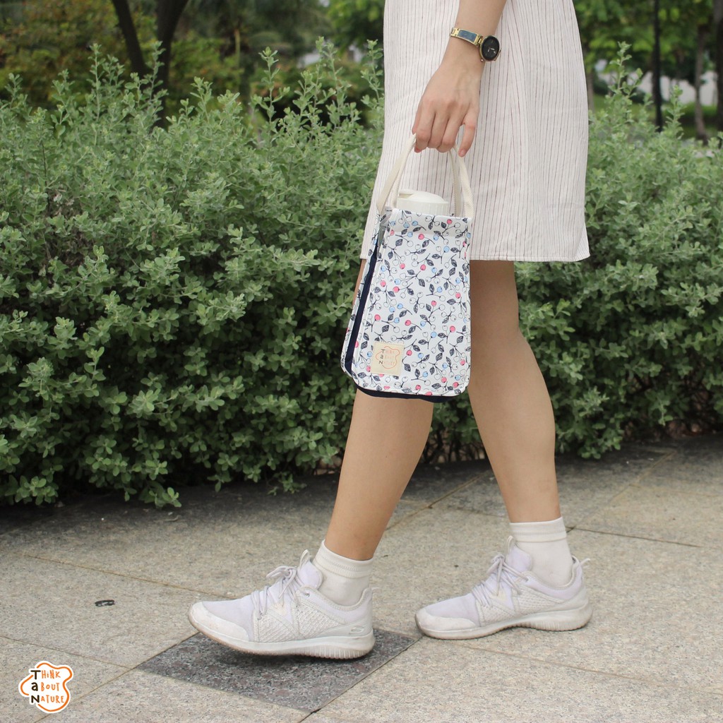 Túi vải đựng bình nước họa tiết cherry/ Túi vải bảo vệ môi trường/ Túi vải đựng bình giữ nhiệt/ ly giữ nhiệt