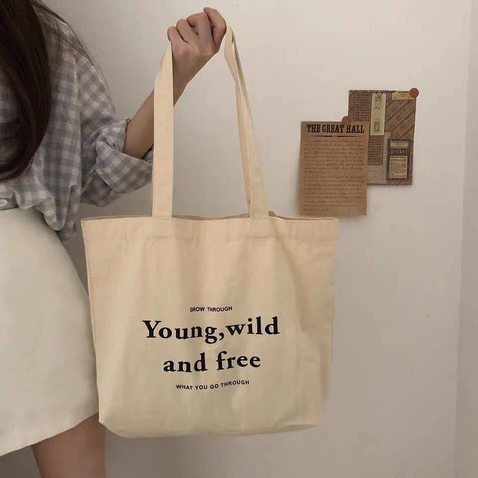 Túi tote vải Canvas đeo vai cỡ to đi học đi chơi phong cách Hàn Quốc siêu xinh
