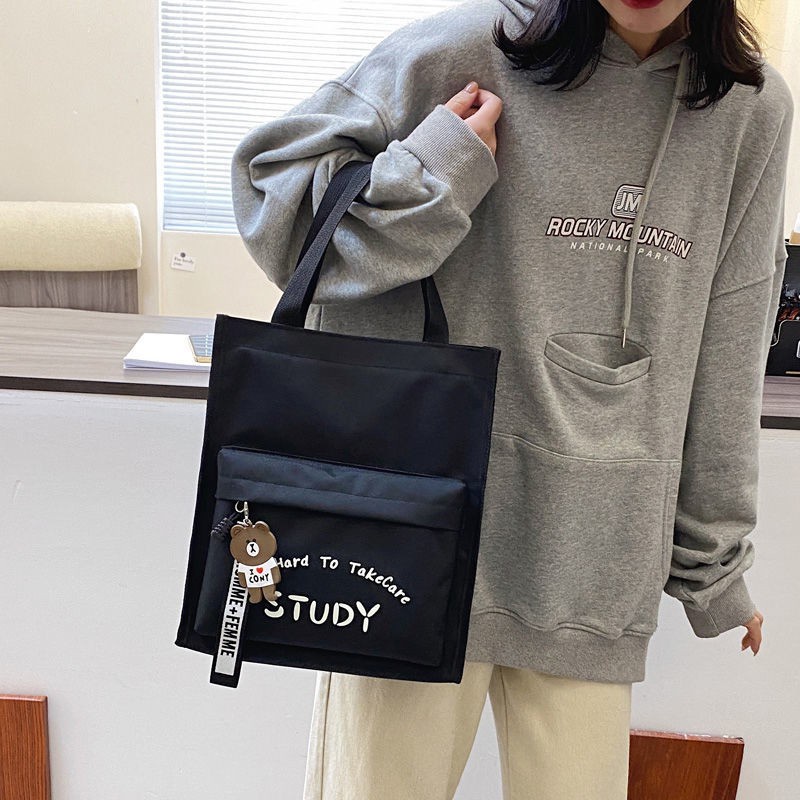 Túi Vải canvas Đựng Sách Khổ A4 Chống Thấm Nước Đa Năng Dành Cho Nam Và Nữ