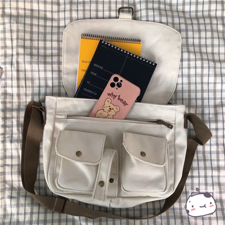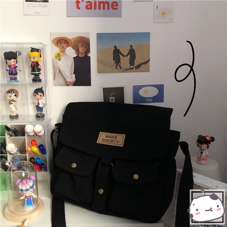 Túi Vải Canvas Đeo Chéo Phong Cách Harajuku Cổ Điển Thời Trang Cho Nữ