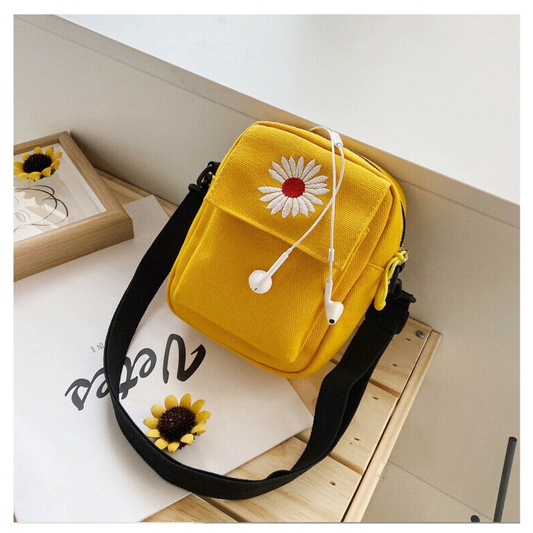 Túi vải canvas đeo vai đựng điện thoại hình hoa cúc nhỏ xinh xắn