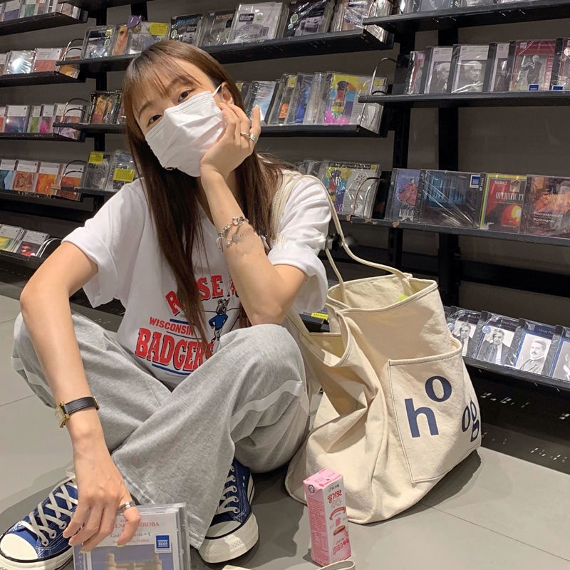 Túi Vải canvas Đeo Vai Sức Chứa Lớn Phong Cách Hàn Quốc Thời Trang Cho Nữ