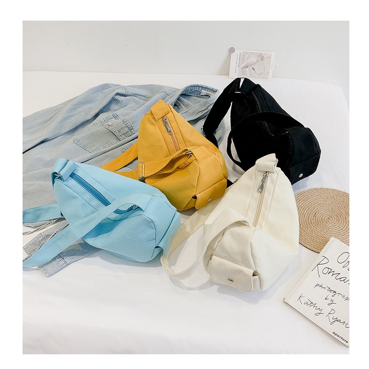 Túi vải Tote đeo chéo bán nguyệt vải canvas phong cách unisex đựng sách vở đi học đi chơi