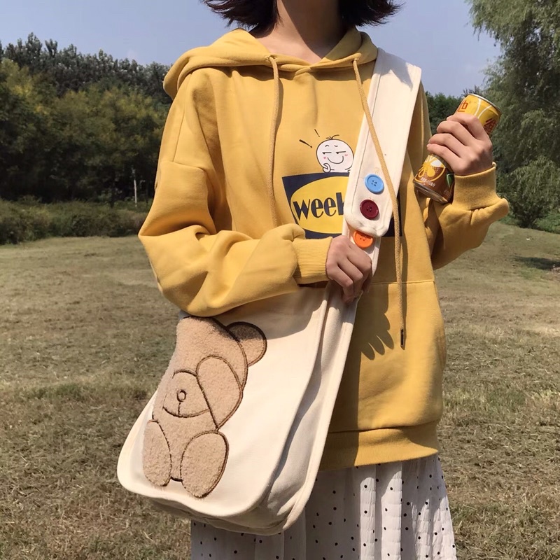 Túi vải tote đeo chéo vai con gấu siêu cute cỡ lớn Trang Xuka order 2 tuần