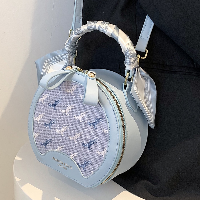 Túi Xách Đeo Vai Hình Tròn Cỡ Nhỏ Phối Khăn Lụa Thiết Kế Đơn Giản Thời Trang Cho Nữ