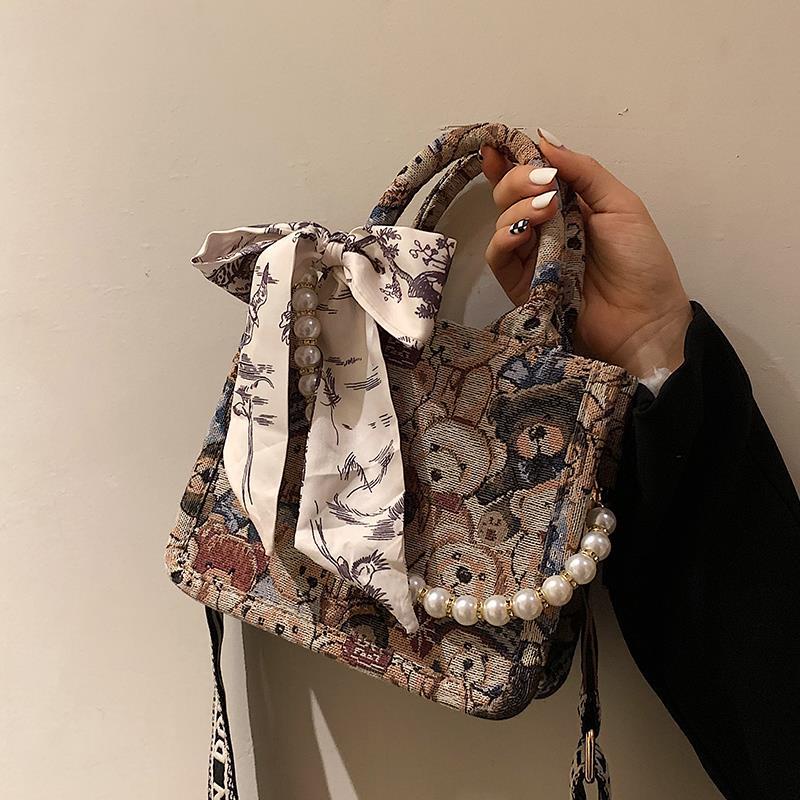 Túi Xách Cỡ Lớn Họa Tiết Tranh Sơn Dầu Họa Tiết Gấu Hoạt Hình Thời Trang Cho Nữ