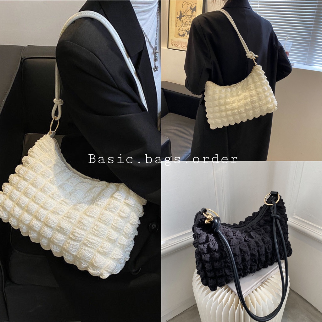 Túi xách nữ đeo vai hoạ tiết ô vuông dập nổi màu đen và trắng phong cách cơ bản dễ phối đồ