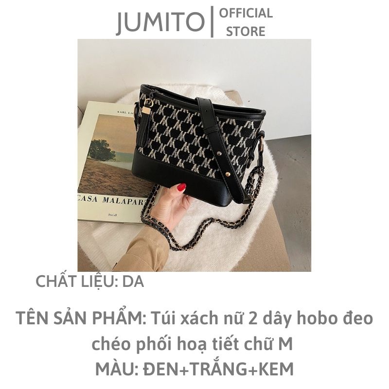 Túi xách nữ 2 dây hobo đeo chéo phối hoạ tiết chữ M kiểu dáng Hàn Quốc siêu xinh JUMITO T1.022.NA