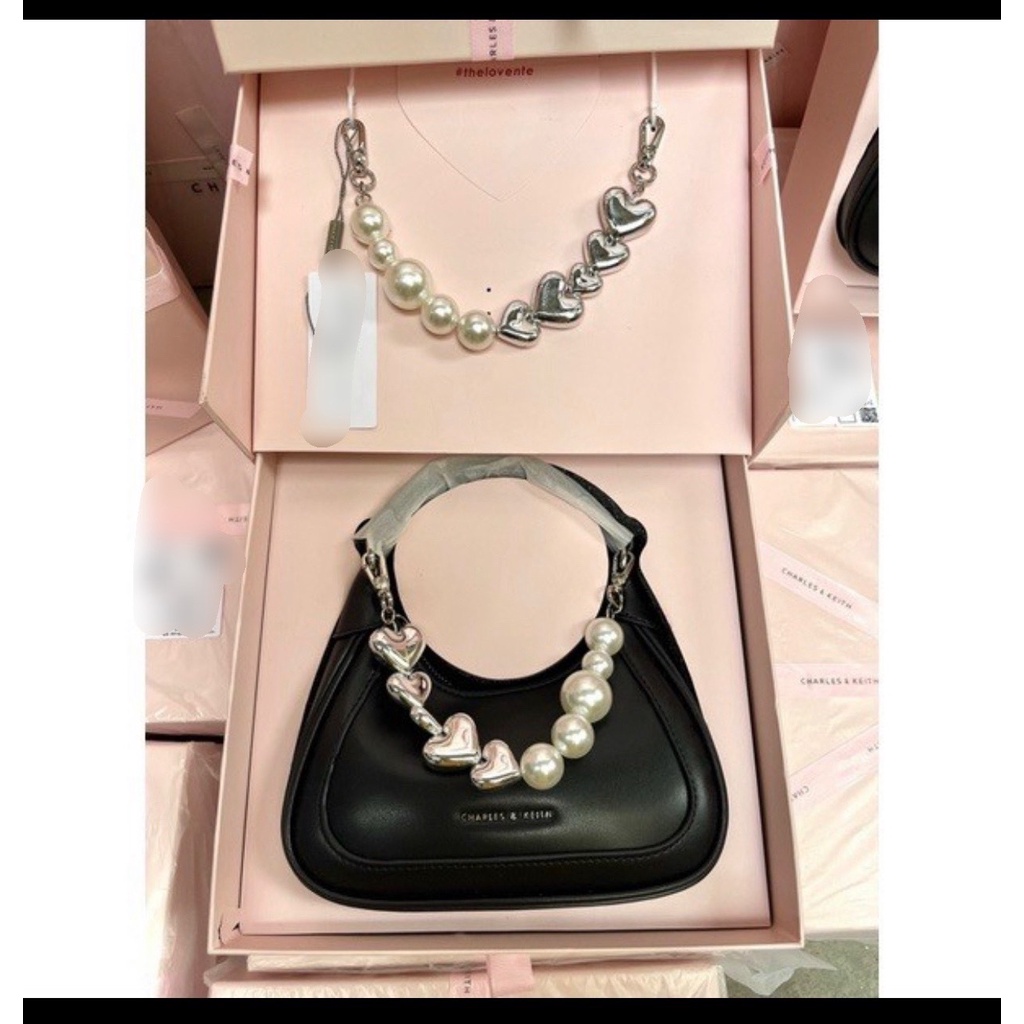 Túi Xách Nữ CNK Màu Hồng Charles & Keith Mini Hạt Ngọc Kèm Nơ Mẫu Mới 2022 Full Box Xịn Sò - TX48