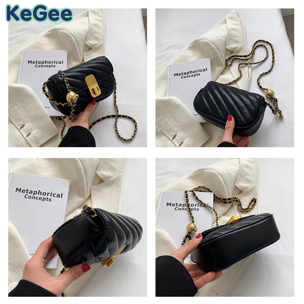 Túi xách nữ KeGee Túi Đeo Chéo Da PU Dây Xích Phong Cách Hàn Quốc Thời Trang Cho Nữ