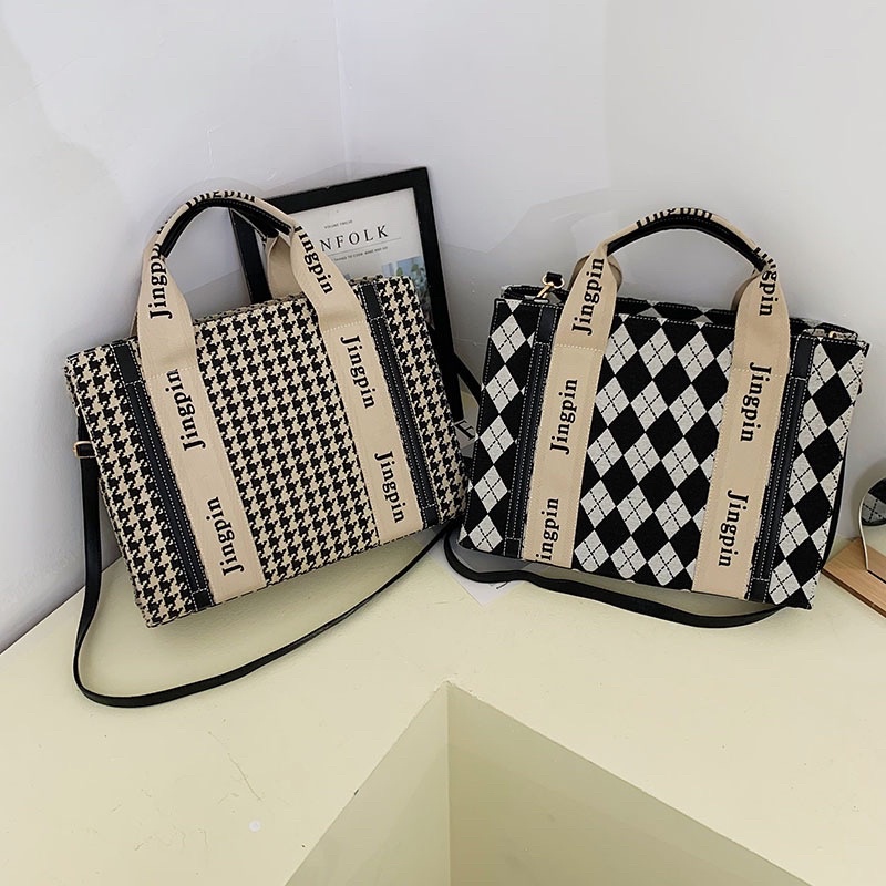 Túi Xách Nữ Công Sở Họa Tiết Nơ Cụp 2 Màu Đen Trắng Hàng Cao Cấp