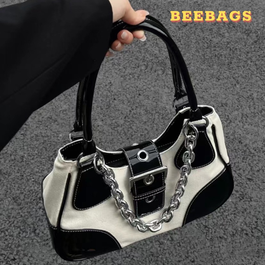 Túi Xách Phối Vải Canvas Và Da Bóng Kèm Dây Xích Cá Tính | TX70 | Túi Thời Trang Cho Nữ Đứng Form Đựng Nhiều Đồ