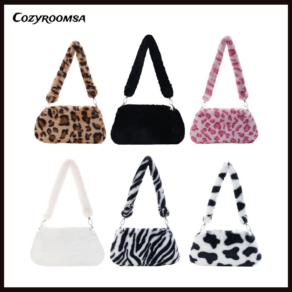 Túi xách tay phủ lông nhung họa tiết động vật thời trang retro mùa đông cho nữ
