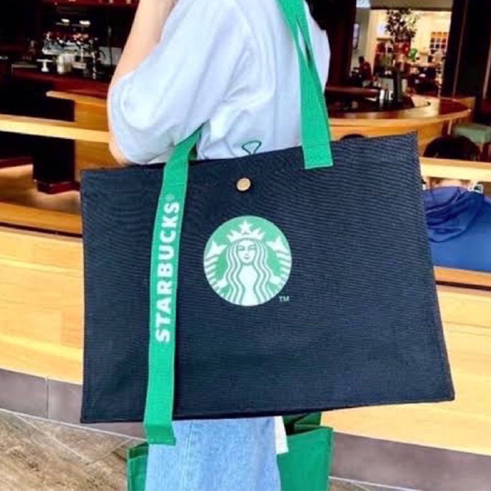 Túi xách tote canvas cỡ lớn họa tiết Starbucks độc đáo