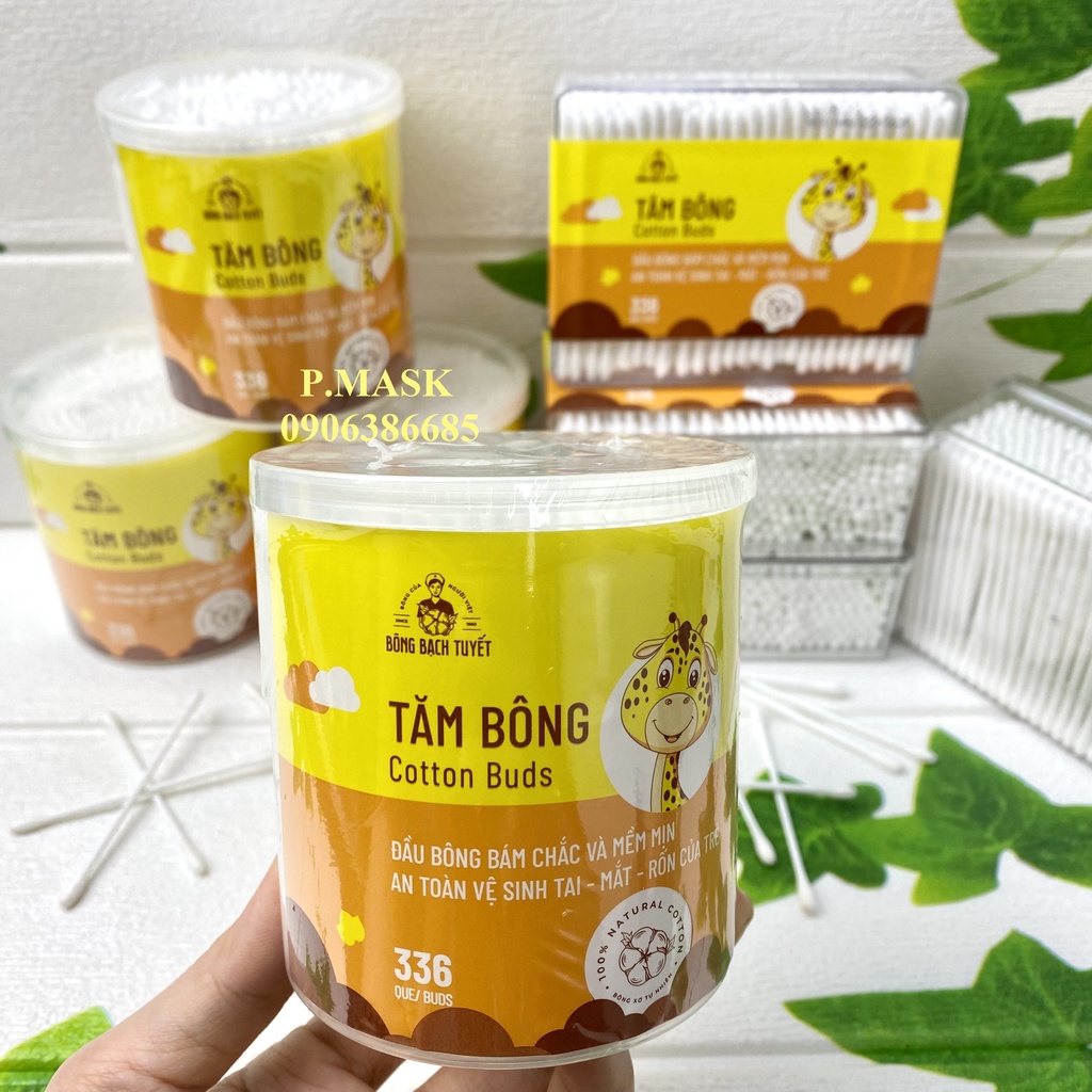 Tăm Bông Trẻ Em 336 Que Hộp Tròn Nắp Xoay / Hộp Chữ Nhật