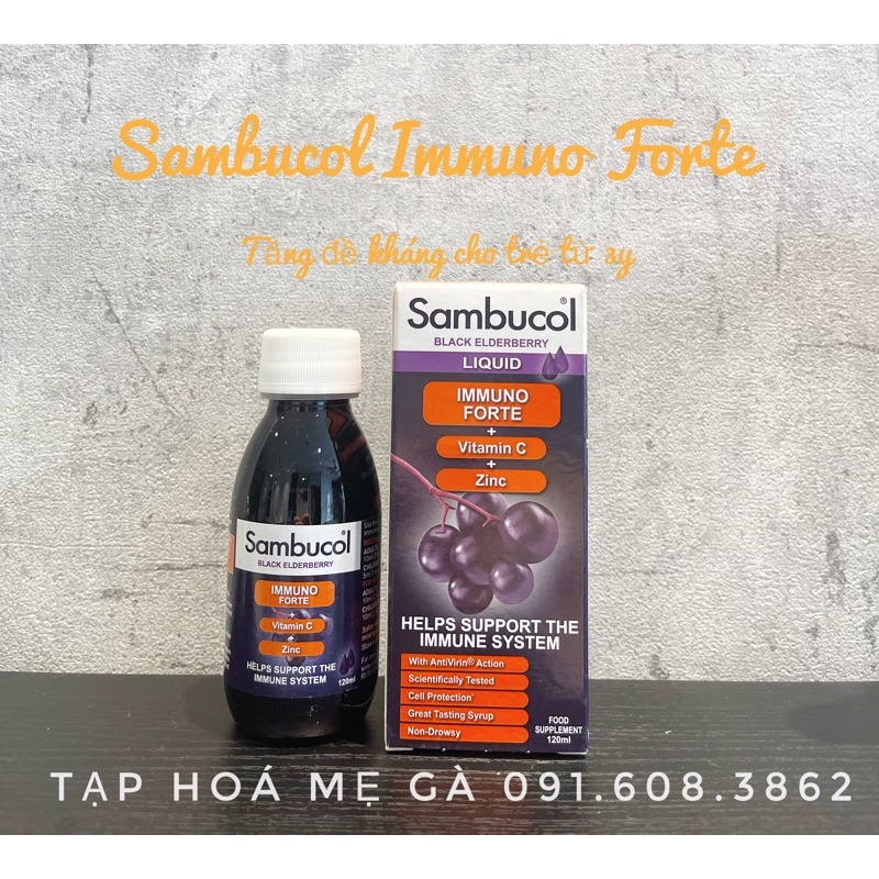 * Siro Sambucol tăng đề kháng cho trẻ * Thể tích :120ml * Thương Hiệu: Sambucol * Xuất sứ: UK - Cách sử dụng Siro Sambucol Black Elderberry Liquid : + Trẻ từ 1 tuổi đến 6 tuổi : 5ml 1 lần trong ngày + Trẻ từ 7 tuổi đến 12 tuổi : 10ml 1 lần trong ngày *** Chú ý : V