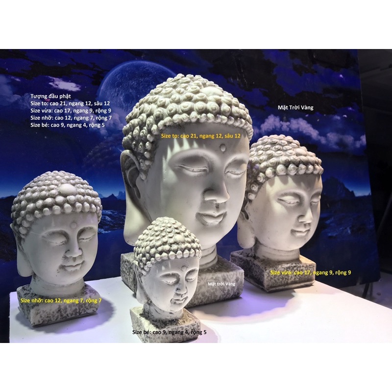 Tượng đầu phật, bán diện trang trí tiểu cảnh, bể cá, sân vườn