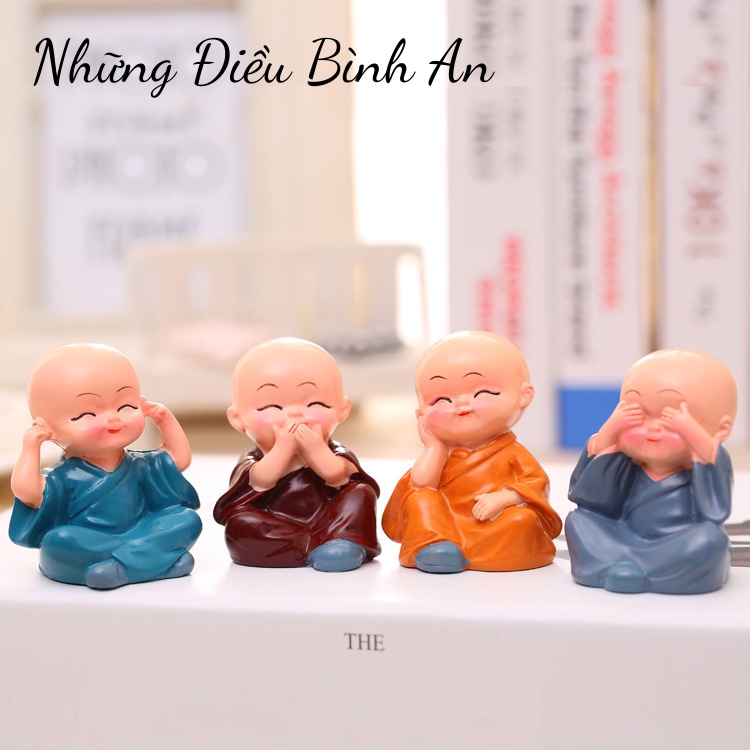 Bộ Tượng Chú Tiểu Hòa Thượng Tứ Không Mini Phong Thủy Trang Trí Bàn Làm Việc