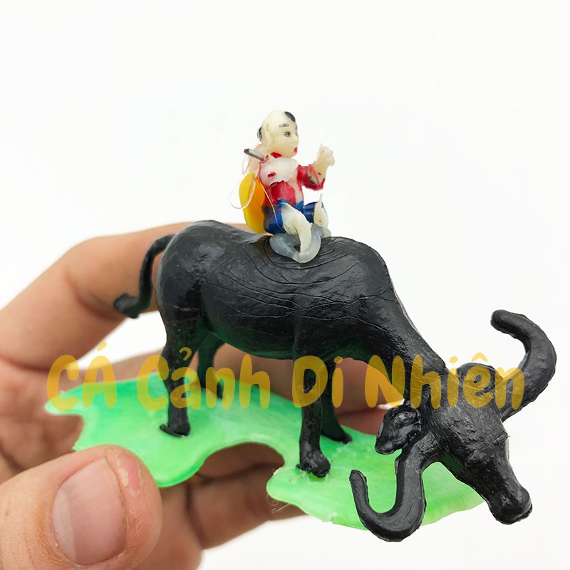 Tượng em bé cưỡi trâu làm tiểu cảnh trang trí hồ bể cá, hòn non bộ