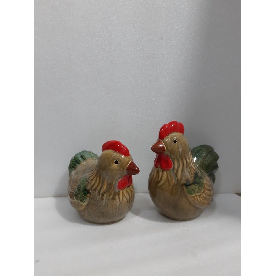 Tượng gà gốm trang trí 2 con