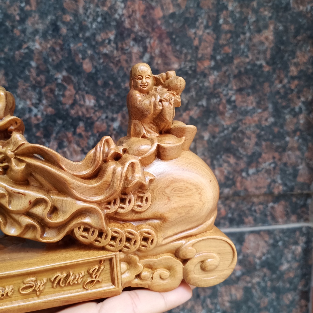 Tượng phật di lặc kéo bao tiền bằng gỗ thơm đế vạn sự như ý