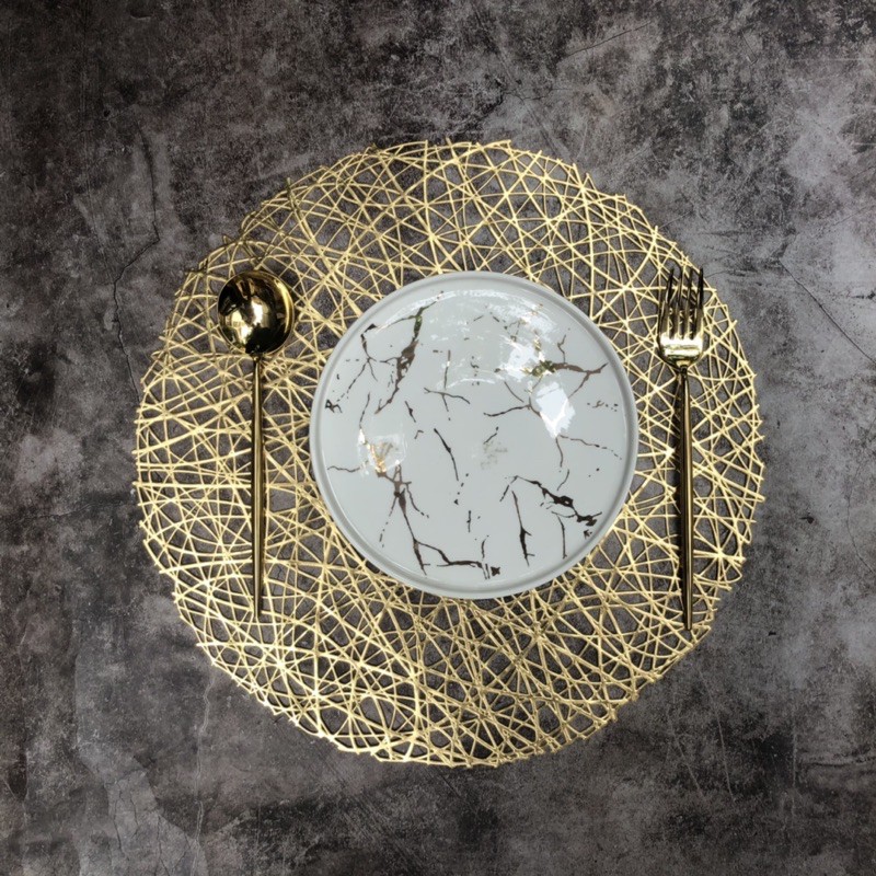 Tấm lót bàn ăn, lót lọ hoa, placemat, nhựa dẻo màu bạc và vàng, đường kính 38cm, xinh, rẻ, tiện lợi